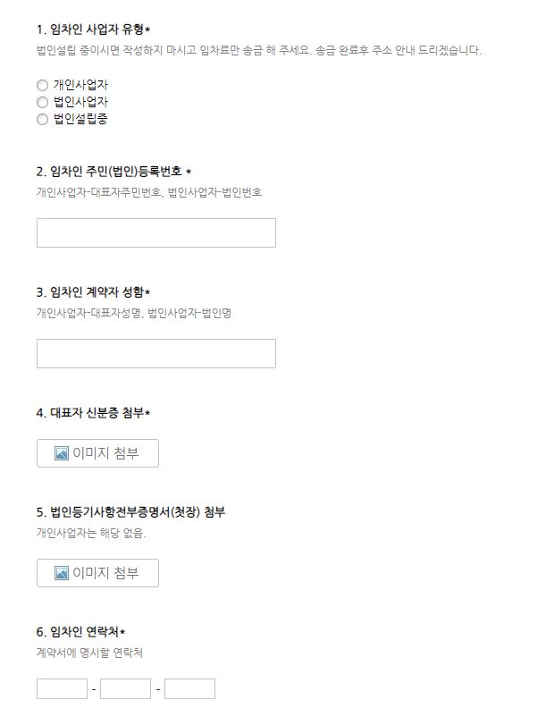 등록 의사를 밝히니, 전자 계약서 링크를 보내주셨다. 사업자 정보와 임대차 계약 기간 등의 정보를 입력하면 메일로 임대차내역서를 작성하여 보내주신다.