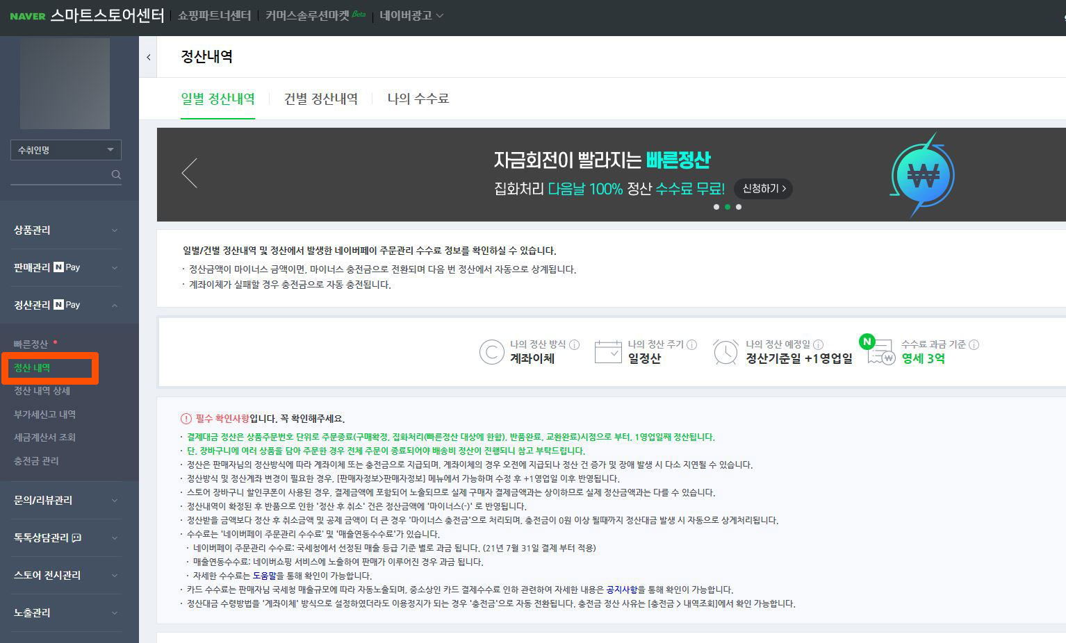 스마트 스토어 정산 내역