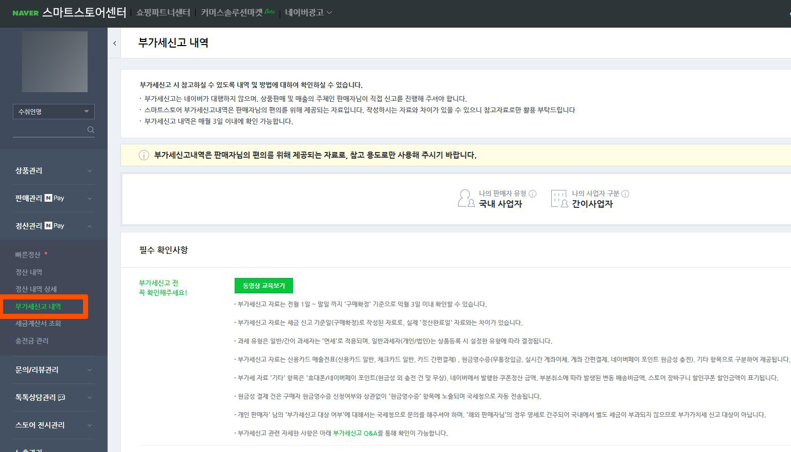 스마트 스토어 부가세 신고 내역