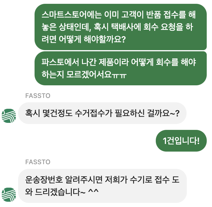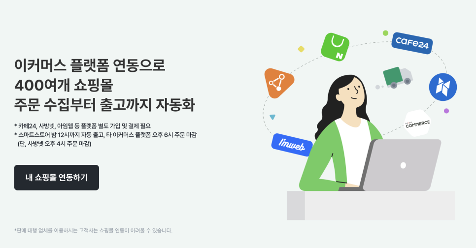또 고객센터가 잘 되어있다. 처음에 택배 입고하고 쇼핑몰 연동하느라 하루에 5번가량을 고객센터 채팅 문의를 했는데, 모든 답변을 아주 빠르고 정확하게 답변해 주셨다. 나는 전화보다 채팅을 좋아하는지라 채팅이 잘되어 있는 곳이 좋다!