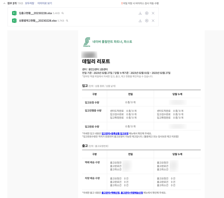 또 메일로 매일매일 데일리 리포트를 보내준다. 재고가 얼마나 남았고 몇 개가 출고되었고 등등.. 매번 확인하지는 않지만, 수시로 알려주니 재고 확인에 도움이 될 것 같다.