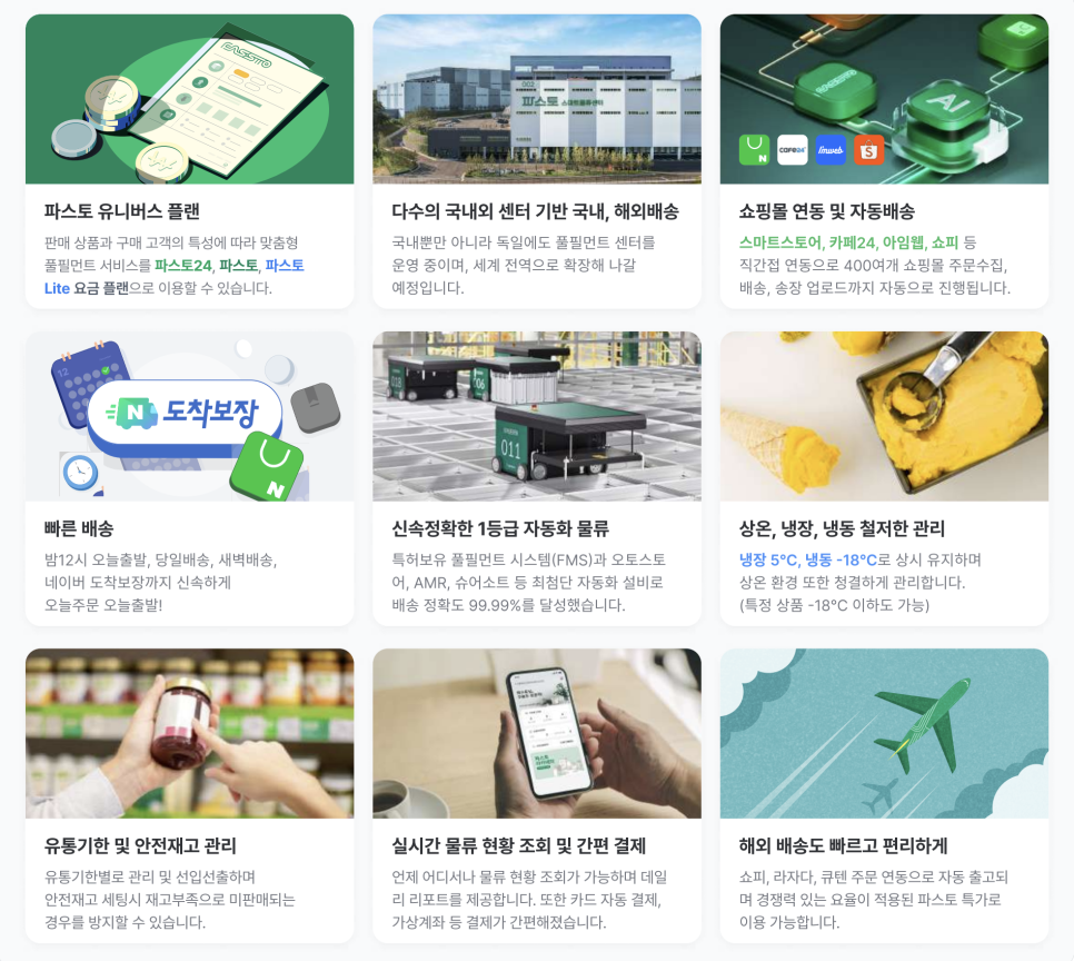 시간을 효율적으로 사용하기 위해 3pl 풀필먼트 업체를 알아보다 네이버 도착 보장 서비스까지 이용할 수 있는 파스토라는 곳을 알게 되었다.